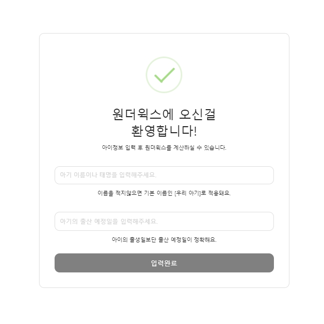 원더윅스 계산기 사용방법은 아이이름을 입력 후 태어난 날짜를 기입하면 됩니다.