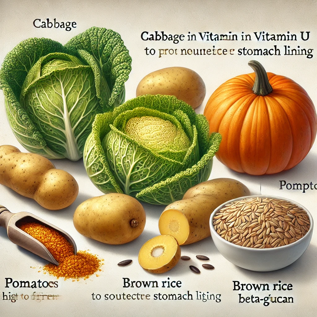 - 양배추: 양배추는 비타민 U가 풍부해 위 점막을 보호하고 위염 및 위궤양 치료에 효과적입니다. 소화를 돕고, 위장의 염증을 줄이는 역할을 합니다.