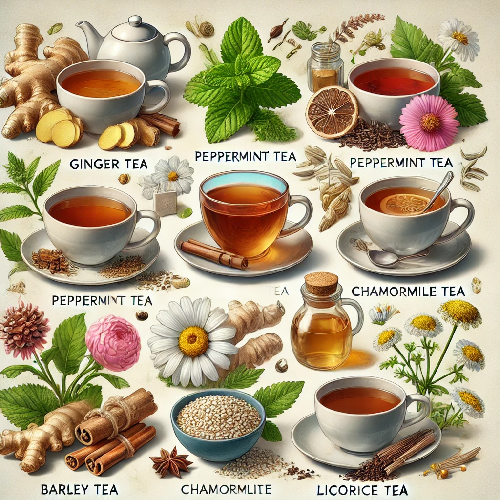 - 생강차: 생강차는 소화를 촉진하며, 위장의 염증을 줄이고 소화불량 및 메스꺼움을 완화시켜 줍니다.