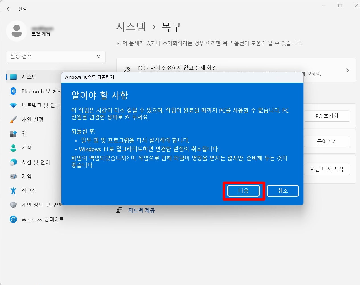 윈도우11 윈도우10 다운그레이드