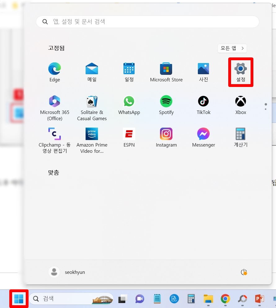 | 1) 설정앱을 열어 줍니다. 단축키로는 윈도우+i 버튼을 눌려주시면 됩니다. |