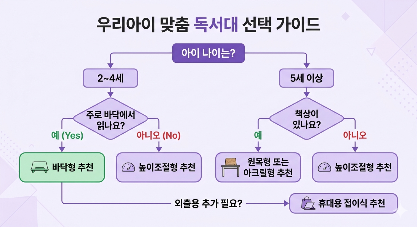 아이 나이와 생활 환경을 먼저 파악하는 것이 독서대 선택의 출발점입니다.
