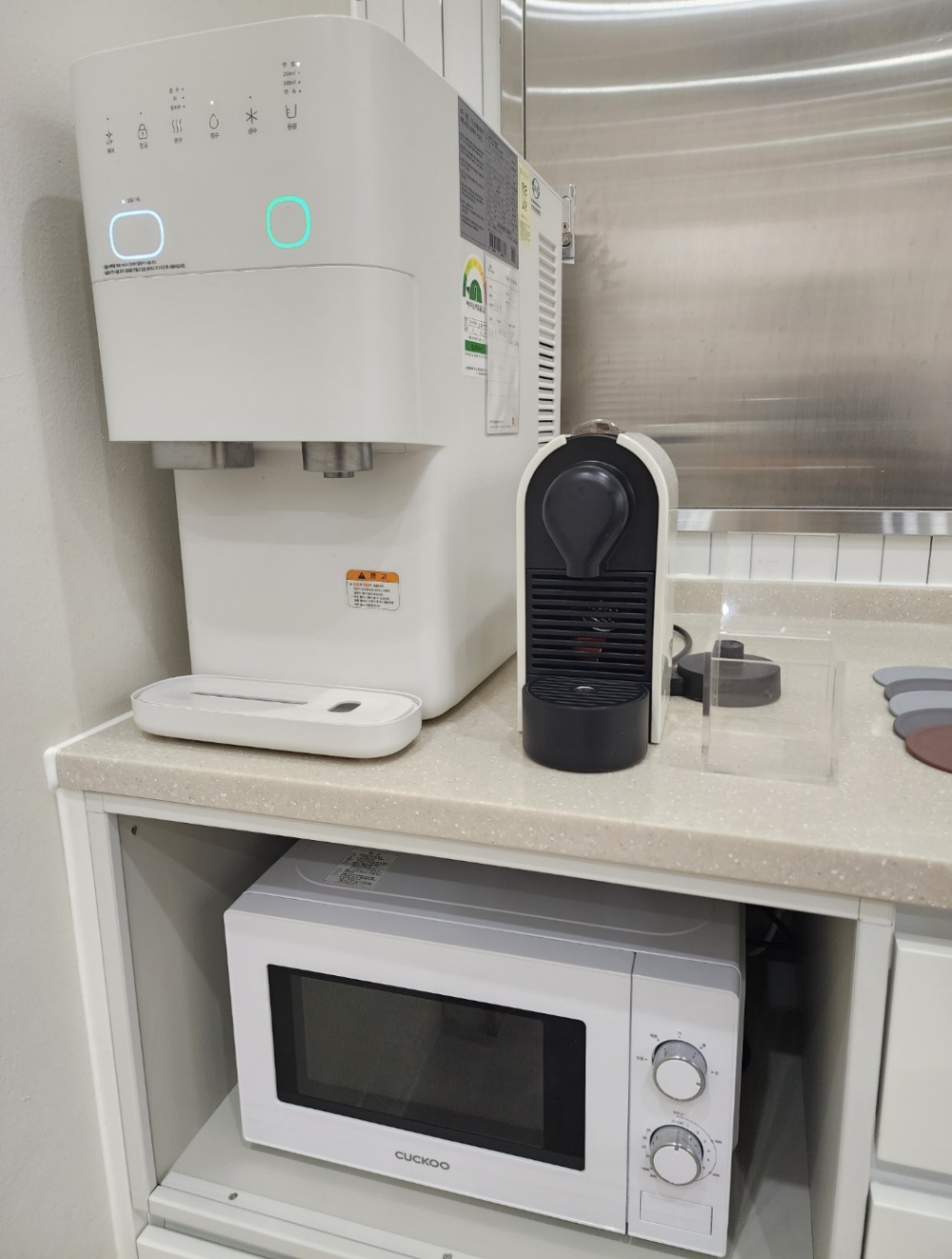우리가 흔히 사용하는 집기류나 정수기, 전자레인지, 냉장고등 이런 기분 제품들은 다 준비가 되어있어서 이용하는데 불편함 없이 집처럼 이용했어요. 집에 아기 수영장이 있다 이렇게 보시면 될 것 같아요.