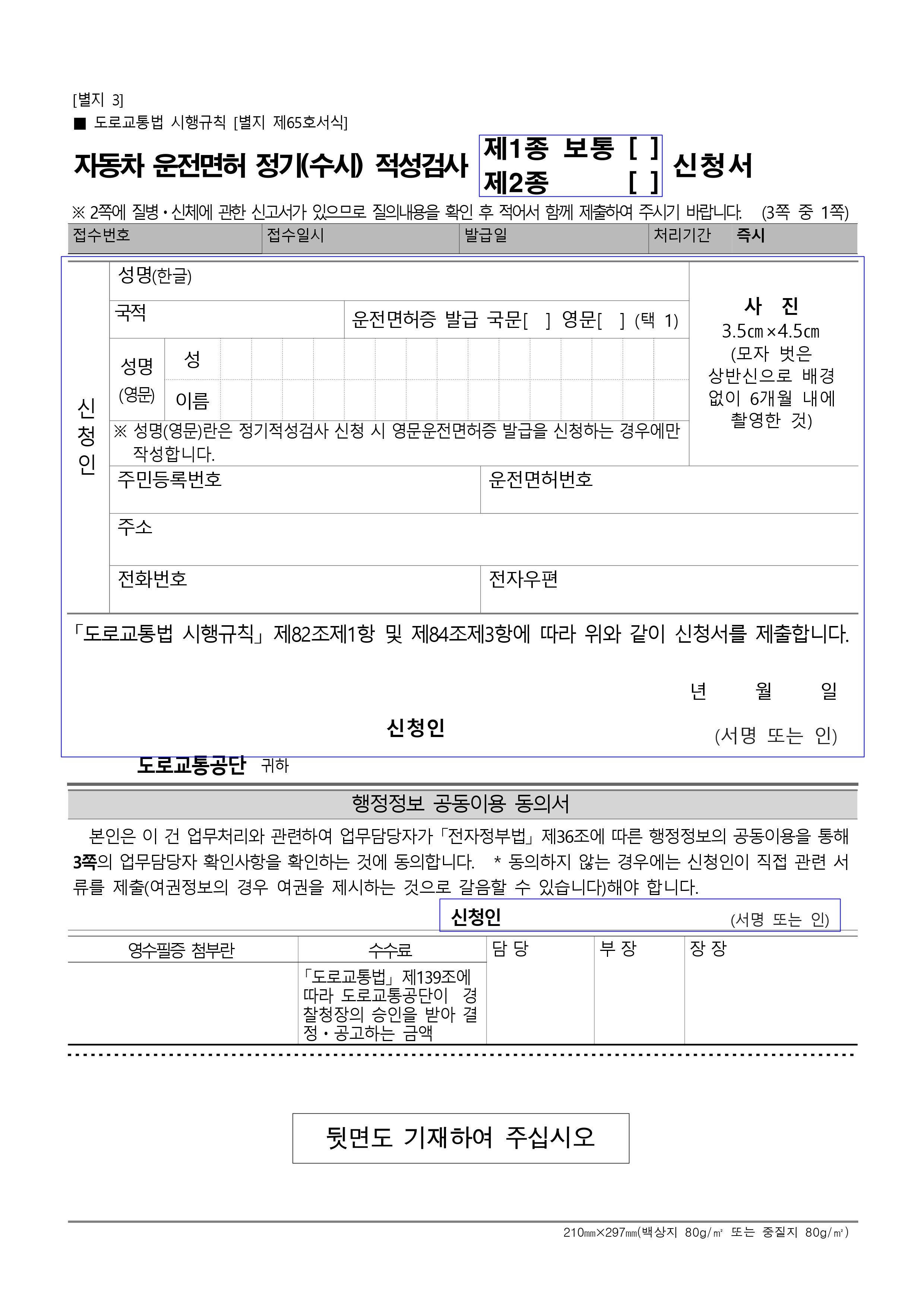 자동차 운전면허 정기(수시)적성검사 신청서 작성법