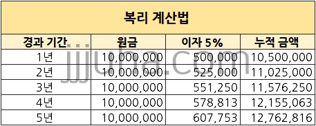 단리 계산법과 복리 계산법 차이 정리