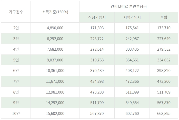 선정기준은 산모 및 배우자의 건강보험료 본인 부담금 합산액이 전국 가구 기준 중위소득 150% 이하에 해당하는 출산가정이며, 건강보험료 산정 방법에 관한 상세한 내용은 보건소에서 도움받을 수 있으니 가까운 보건소를 통해 확인하시면 될 것 같아요. 지원내용이 계속 변경이 있을 수 있기 때문에 글을 참고하면서 최종적으로는 보건소를 통해 정확한 내용을 확인하시는 게 맞다고 생각됩니다. 가구원 수에 따른 소득기준은 아래 표에서 확인 가능합니다.