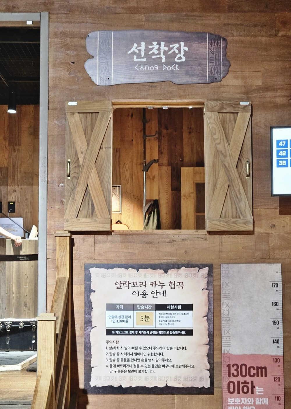 가격은 1인당 3,000원이었습니다. 이용하는 데에는 5분 정도 소요 됩니다. 카누체험은 다른 데 가서도 왠지 체험을 해볼 곳이 많지 않을 것 같아 이용했는데 아이도 노 젓는 거에 흥미를 보이면서 좋았던 것 같아요.