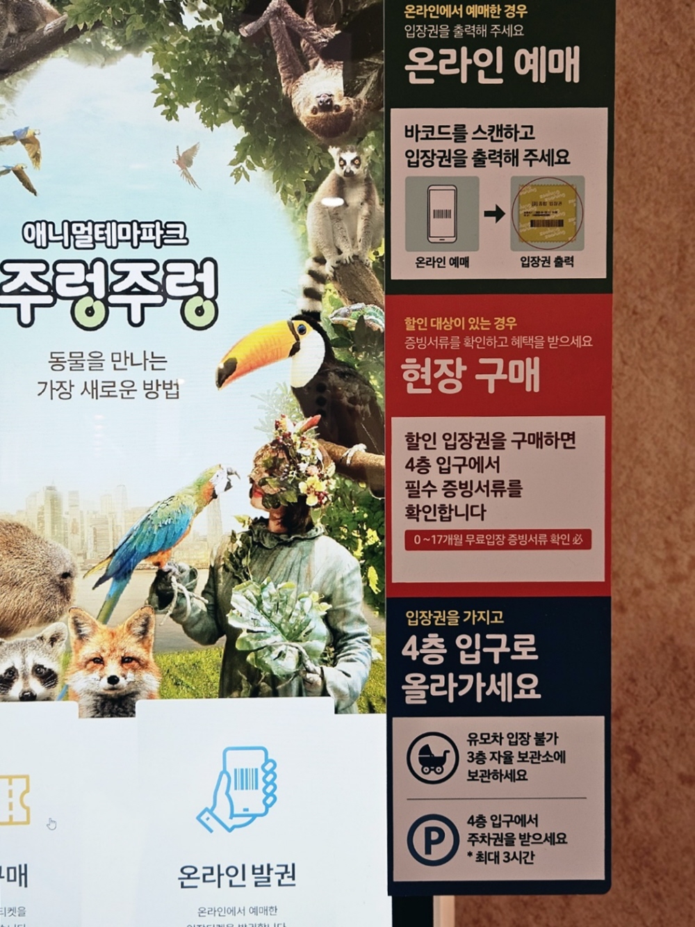 처음에 주렁주렁을 방문하고 이용할 때 동물들을 4층에서 입장하여 보실 수 있는데요. 이때만 해도 생각보다 보는데 1시간가량 걸려서 생각보다 오래 못 이용하는 것 같아 아쉬운 마음으로 나갔는데.