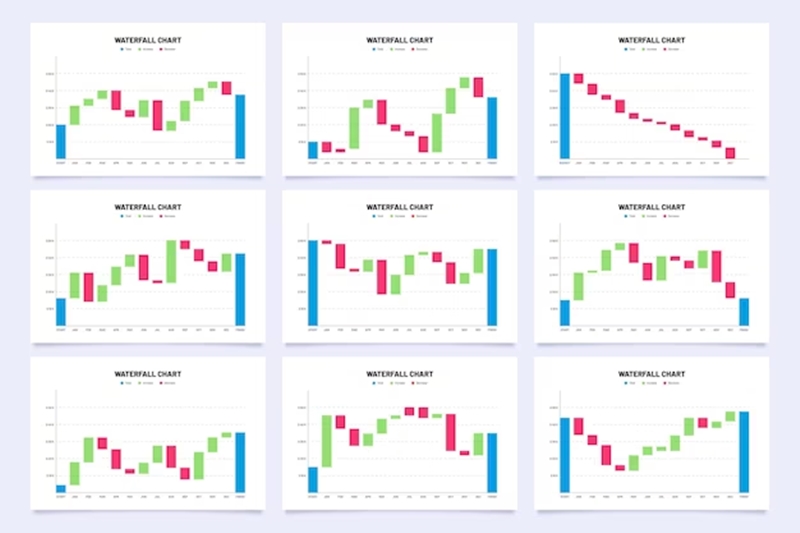 우하향: 오른쪽으로 점점 하락하는 상황 및 차트.