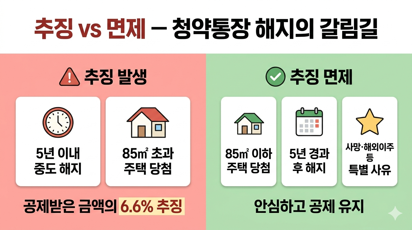 | 국민주택규모 이하 주택 당첨 | 전용면적 85㎡ 이하 주택 당첨으로 해지 시 추징 면제 |