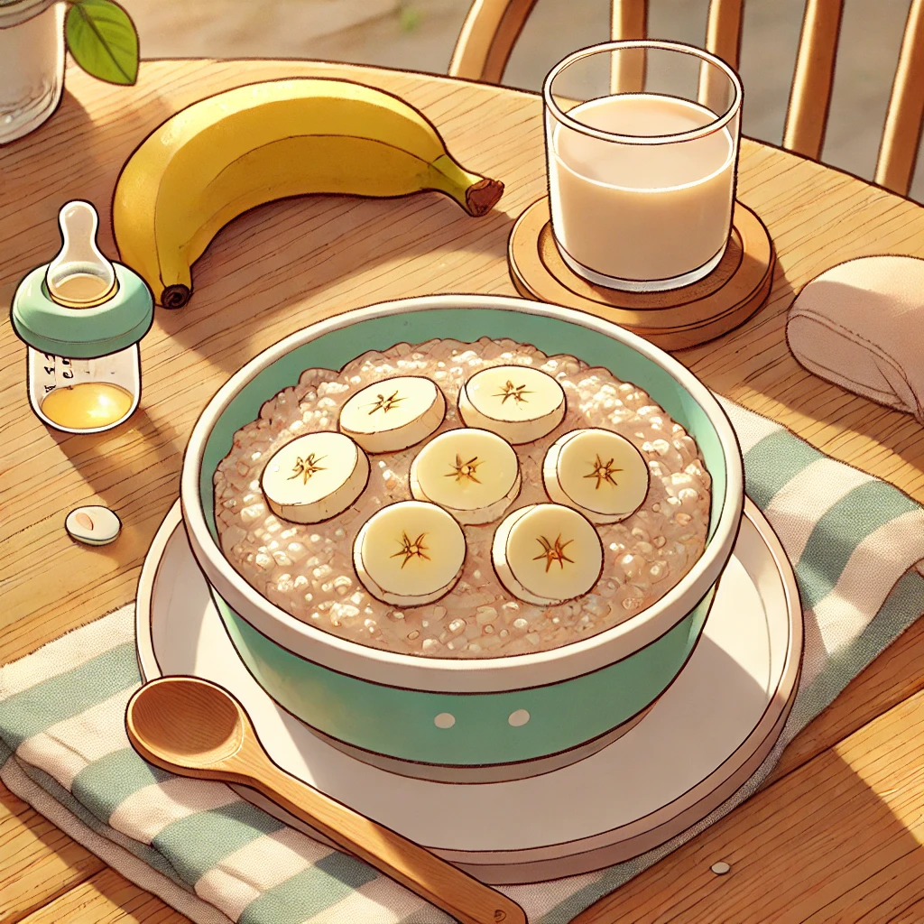 조금 더 진하게 넘어가는 이유식 단계에서 추천! 바나나의 달콤함과 부드러운 오트밀이 찰떡궁합입니다.