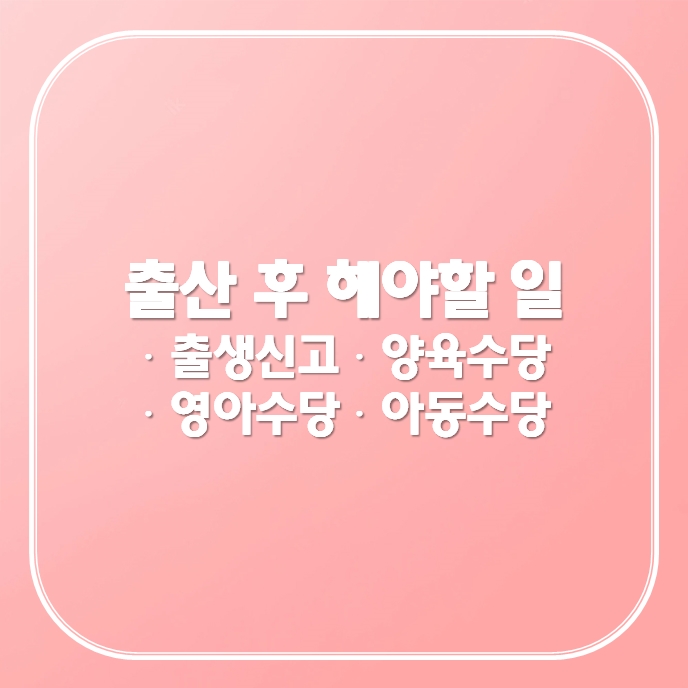안녕하세요. 오늘은 출산 후 할 일에 대하여 알아보려 합니다. 아이를 첫 출산하고 어떤 일들을 해야 하실지 아마 모르실 것 같은데요. 많은 분들이 출산 후 어떤 일들을 해야 하고 어떤 혜택들이 있으며 이런 부분들을 궁금해하시는데