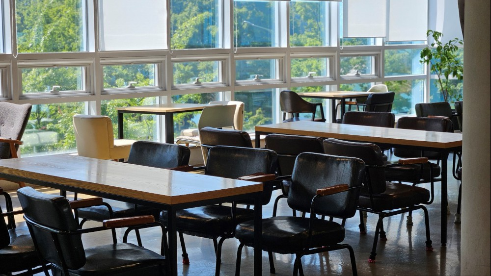 충주댐 물문화관 내부에는 충주댐 카페에서 잠시 휴식을 취하는 것도 좋은 선택인데요. 1층에 보시면 카페가 별도로 마련되어 있는데 의자가 판한 의자로 이루어져 있어서 분리가 가능한 아이라면 부모님은 카페에서 쉬면서 아이들은 즐겁게 놀 수 있습니다 :)