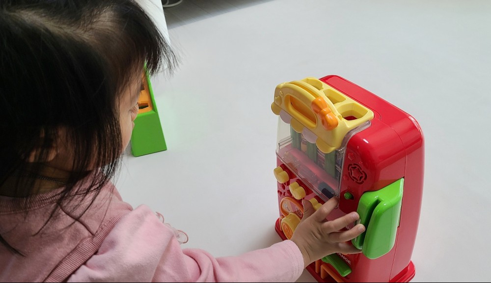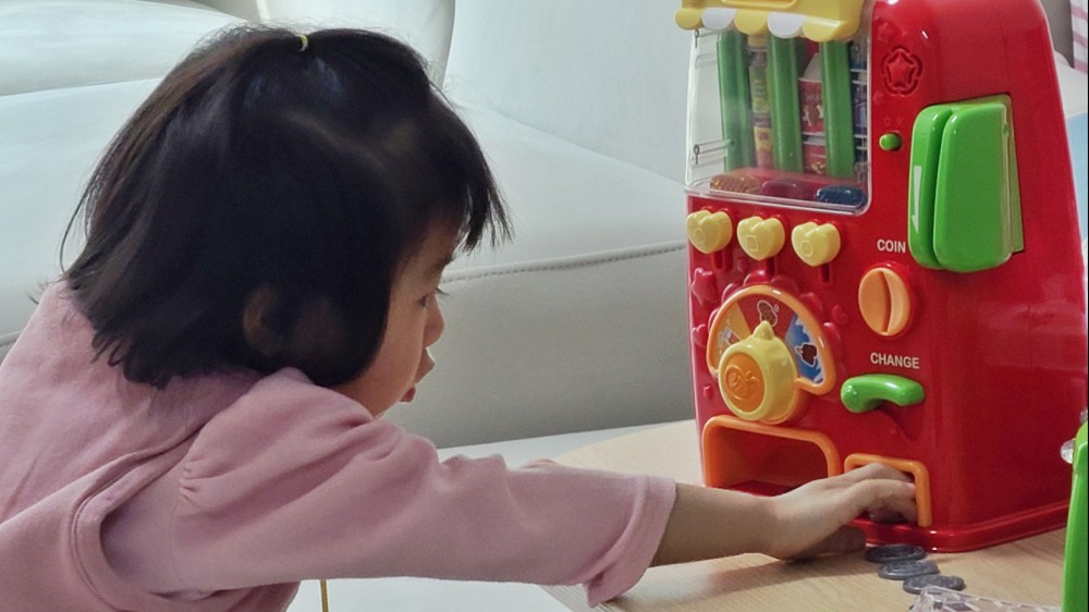 (※ 일반 자판기처럼 누르는 게 아니라 ‘내리는’ 방식이라 처음엔 부모가 시범을 보여주면 금방 따라 해요.)