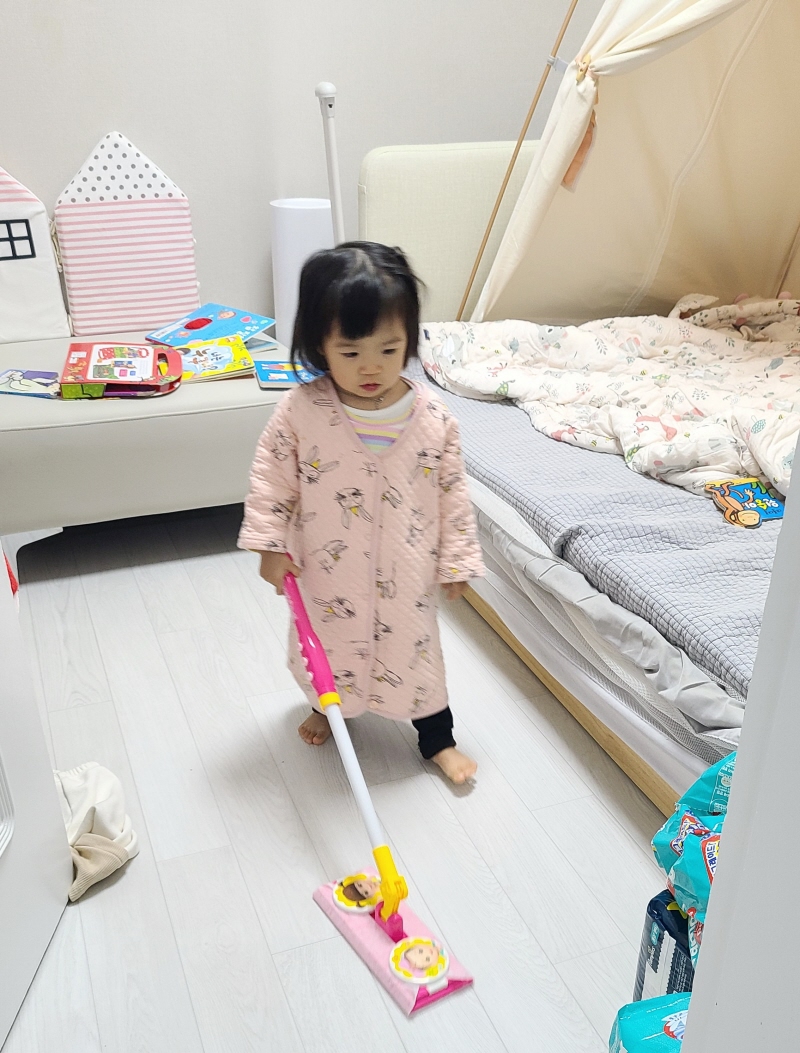 - 작동 방식이 단순한 배터리 전원 + 소리 기능 중심이라 실제 청소 효과는 없음 청소감을 기대하기보다는 놀이용으로 생각