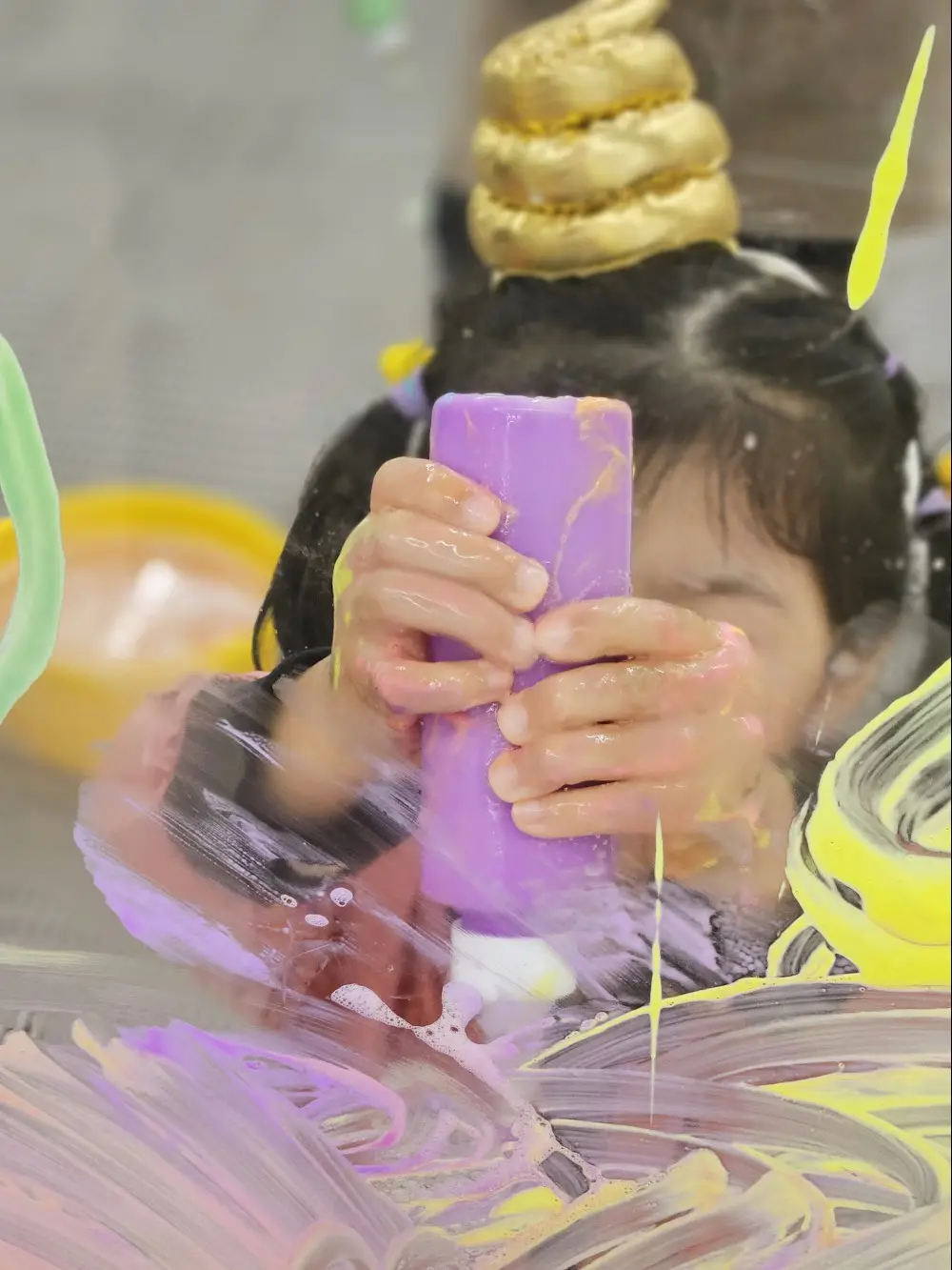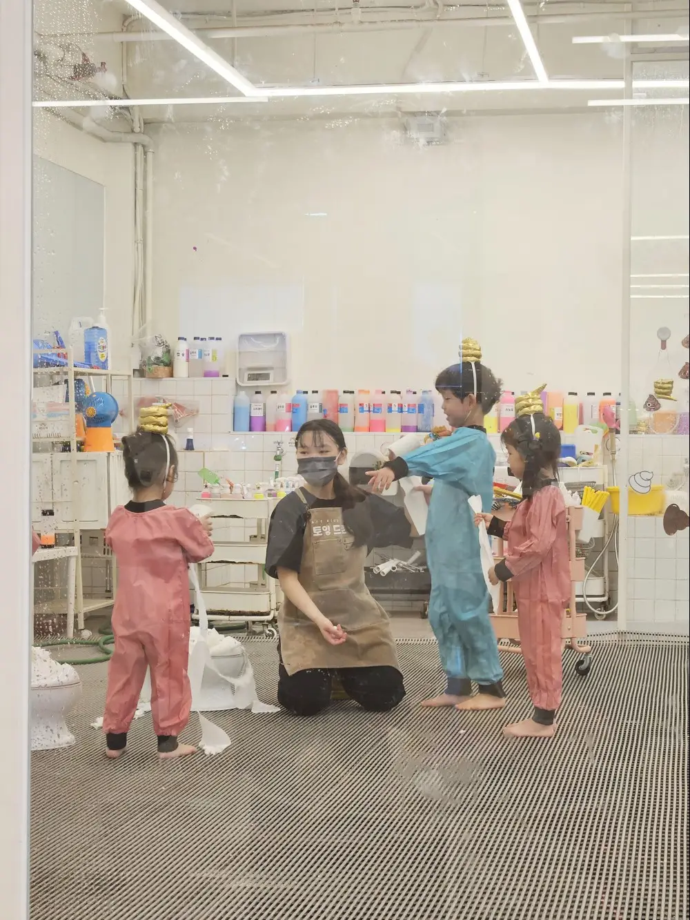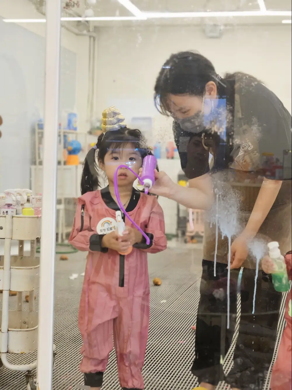 딸래미는 평소에 창의적인 놀이를 좋아해서 물감놀이인 드로잉 체험을 선택했는데요. 선생님의 안내와 함께 안전하게 유리벽에 그림을 그리고, 비눗방을과 물총 놀이도 더해져 색다른 즐거움을 느낄 수 있었어요!