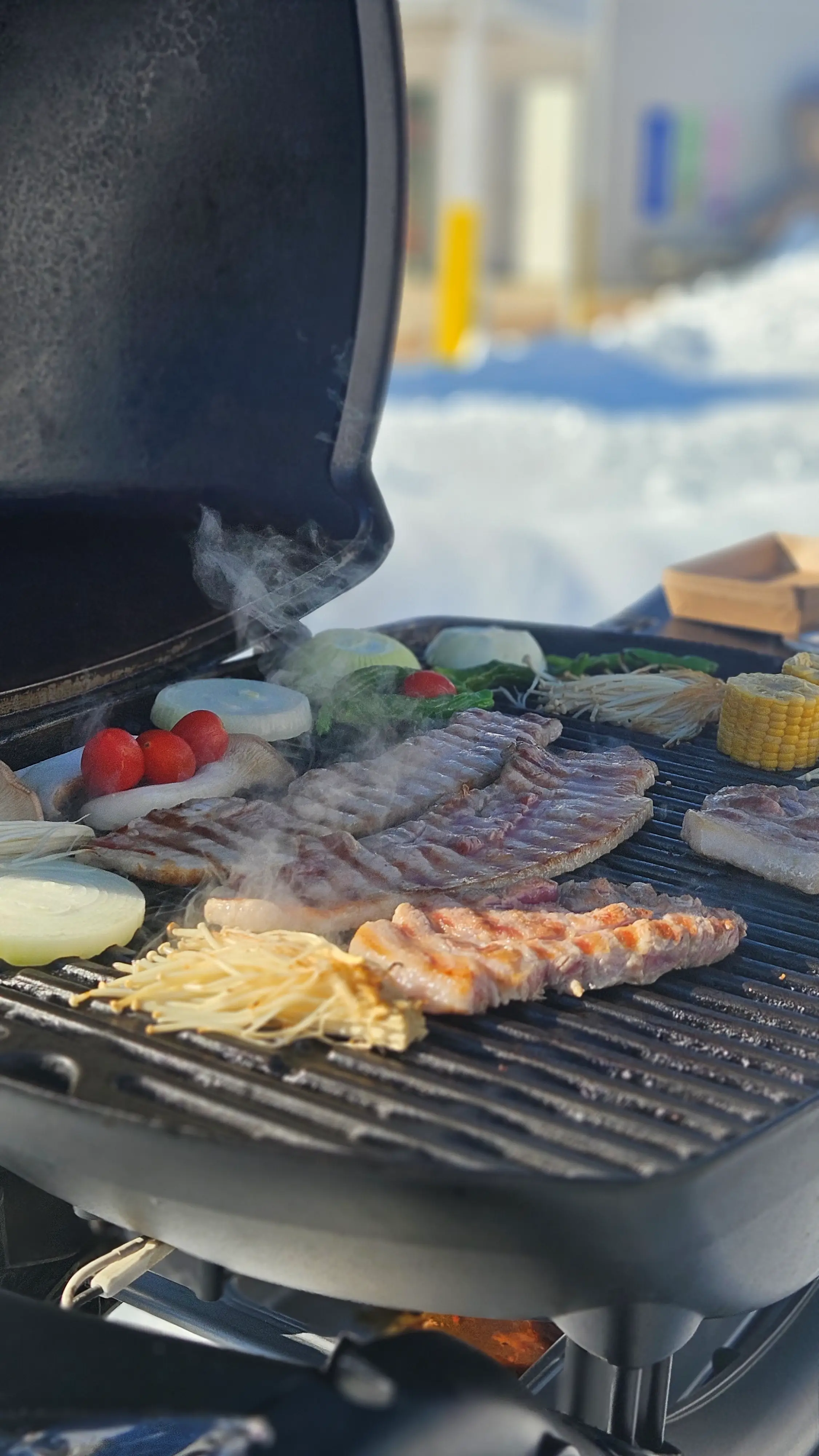 - 바베큐 파티: 겨울 캠핑의 백미는 바로 따끈따끈한 바베큐! 글램핑 텐트 옆에서 바베큐를 즐겼어요! 겨울철에 춥게 먹은 바베큐여서 그런지 더욱 맛있었어요! 그리고 구운다음에는 당연히 따뜻하게 텐트안에서 드실 수 있습니다 :) 바베큐 세트를 이용했는데, 신선한 고기와 채소가 준비되어 편리했어요! 특히 야채가 진짜 신선했고 고기가격만 내면 야채는 리필로 마음껏 먹을만치 가져가면 되니 너무 좋더라고요!