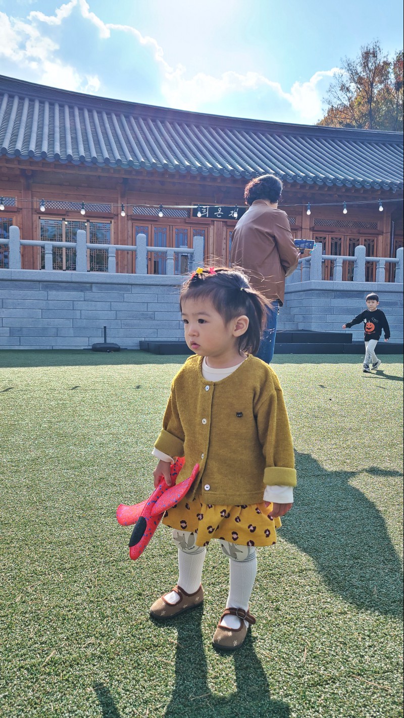 아이들이 뛰어놀 수 있게 실외에는 잔디도 깔려있어서 저희 딸내미는 잔디에서 엄청 뛰어놀았네요. 또 보이는 공간에 테이블이 있어서 생각보다 잔디 있는 곳이 크게 위험하지는 안았지만 그래도 너무 어린아이들이라면 꼭 아이들이 잘 놀고 있는지 주의 깊게 보셔야 될 겁니다.