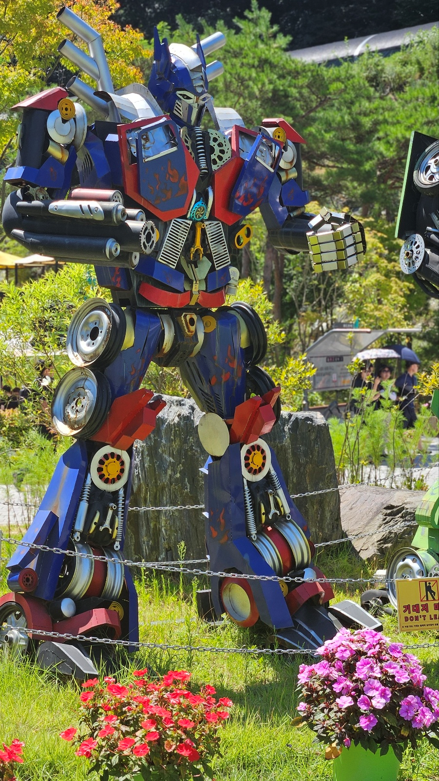 활옥동굴 입장 전에 로봇들과 공룡들을 보실 수 있는데요 넓은 풀밭 마당이 있어서 아이들이 뛰어놀기 좋게 구성되어 있어 들어가기 전 또는 나올 때 카페를 이용하면서 아이들과 함께 놀면 아이들이 좋아할 거예요. 저희 아이의 경우 매표소 앞마당에서 많이 뛰어놀았던 것 같아요 :)