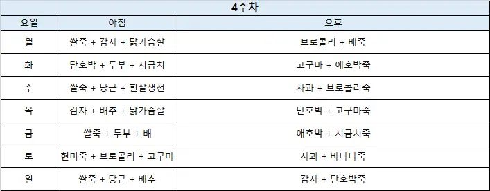 7개월 이유식 식단표 본문