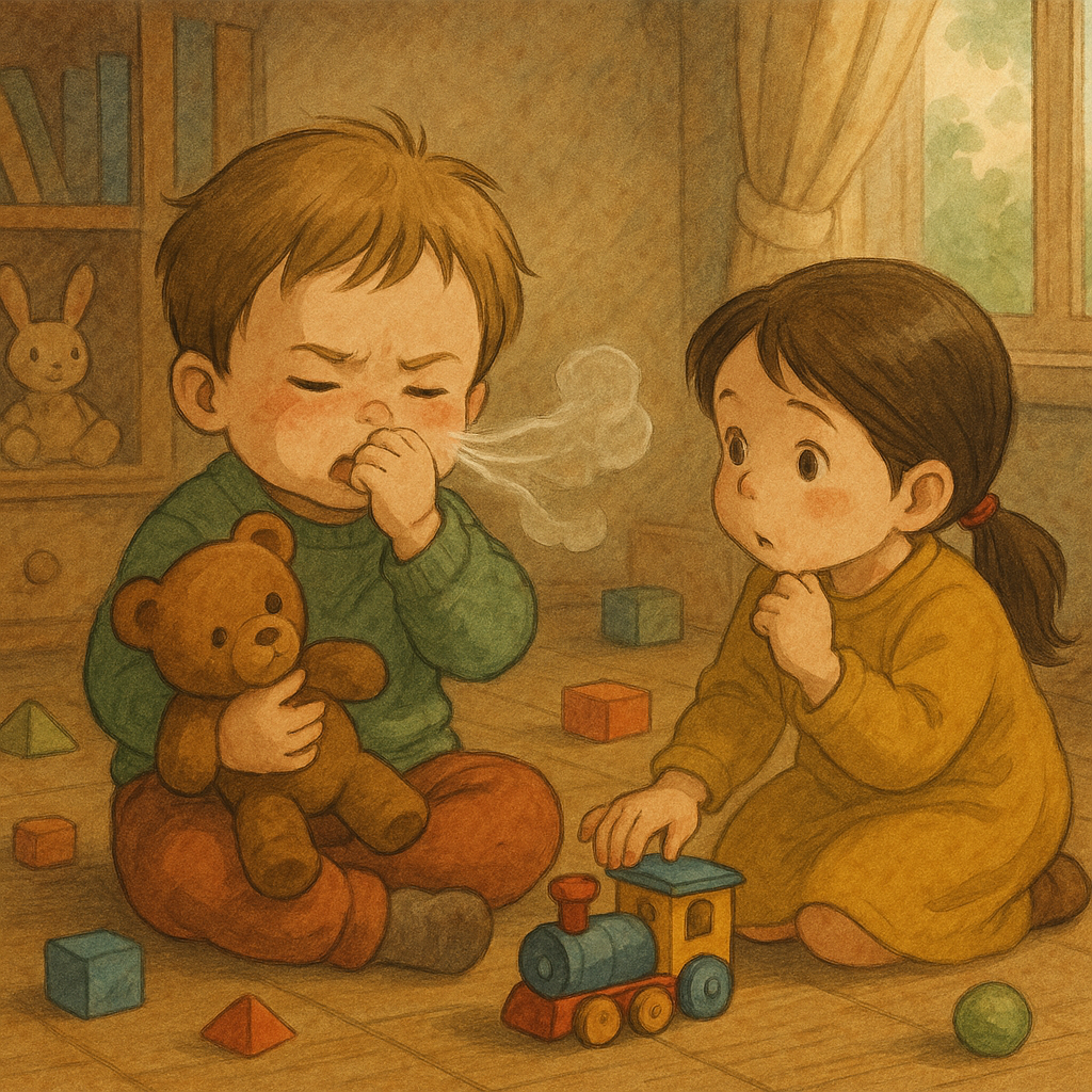 RSV바이러스는 감기처럼 기침·재채기 비말, 손을 통한 접촉, 오염된 물건 표면을 통해 전파돼요. 아이들이 장난감이나 책을 공유하고 손으로 얼굴을 만지는 순간 쉽게 옮을 수 있어요. 게다가 RSV는 표면에서 몇 시간 이상 살아남을 수 있어서, 장난감이나 가구 소독을 자주 해주는 게 좋습니다.