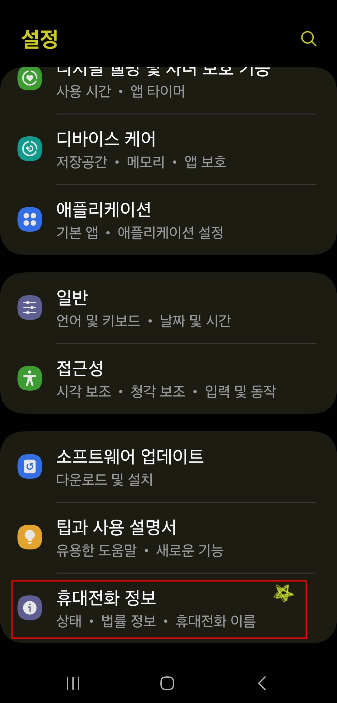 - 핸드폰 설정으로 들어가 [휴대전화 정보] - [소프트웨어 정보] - [빌드번호] 클릭합니다. 이때 빌드 번호를 여러번 클릭하여 위 이미지와 같이 개발자 모드를 켜줍니다. 빌드번호를 여러 번 눌러주면 개발자 모드가 활성화되며 첫 번째 사진의 휴대전화 정보 아래 [개발자 옵션]이 활성화된 것을 확인하실 수 있습니다.