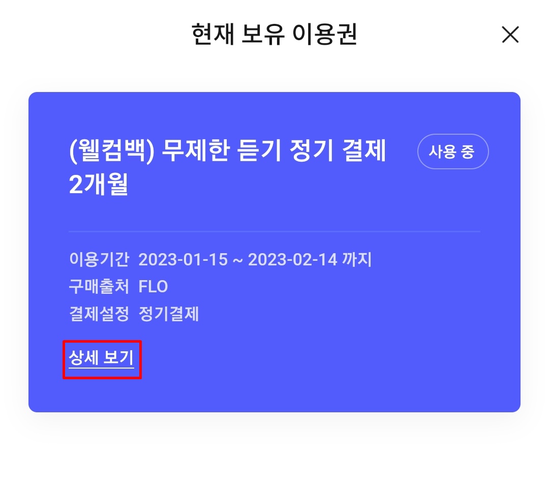 정책상 환불은 이용권 구매 후 7일 이내에 음악감상 이력이 없으신 경우 환불처리를 해준다고 나와있는 것을 확인하실 수 있습니다.