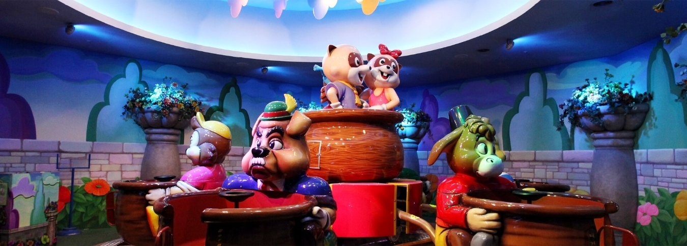 | 헨젤과 그레텔의 과자집 컨셉으로 되어 있는 매직붕붕카입니다. 큰 원을 돌면서 제자리에서도 빙글빙글 도는 놀이기구로 아이들이 좋아해요. 속도감은 빠르지 않아 대부분의 아이들이 무서워하지 않고 탑승이 가능합니다. | |
