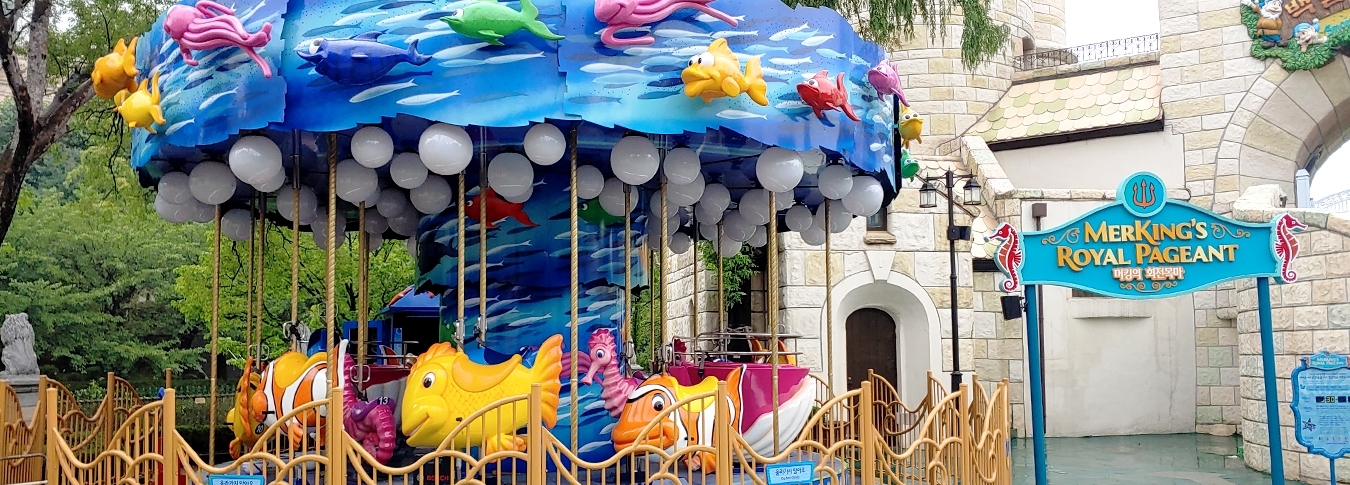 | 기존에 알고 있는 회전목마와 같은 머킹의 회전목마입니다. 말 대신 물고기를 타고 돌아가는 방식이고 위 아래로도 조금씩 움직이는 동작을 하고 있습니다. 아이들은 거의 좋아하는 무난한 놀이기구 중 하나입니다. | |